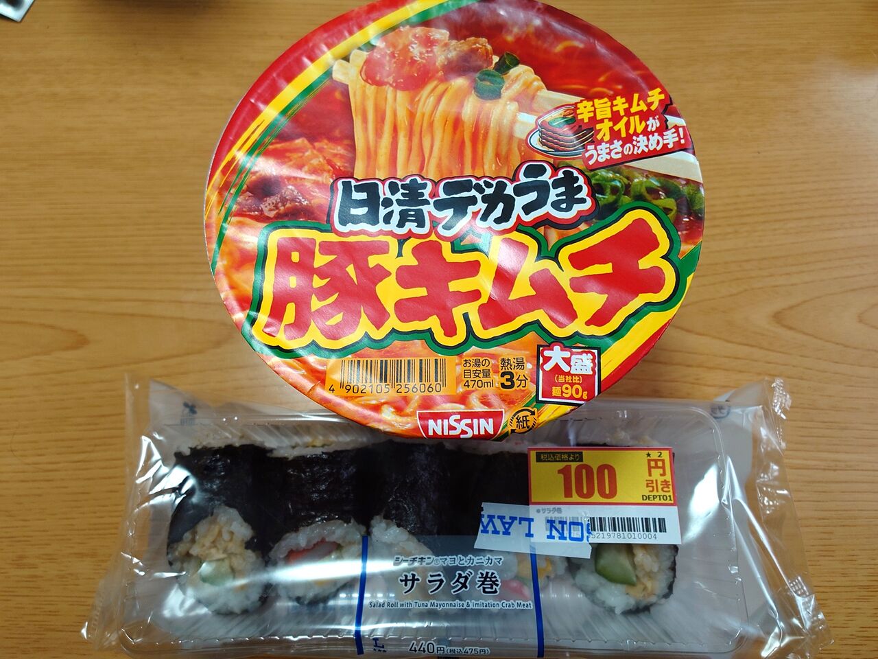 ローソンのサラダ巻と日清デカうま豚キムチ