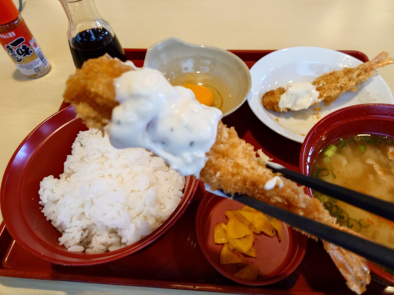 「豚汁定食」と「えびフライ」を!!