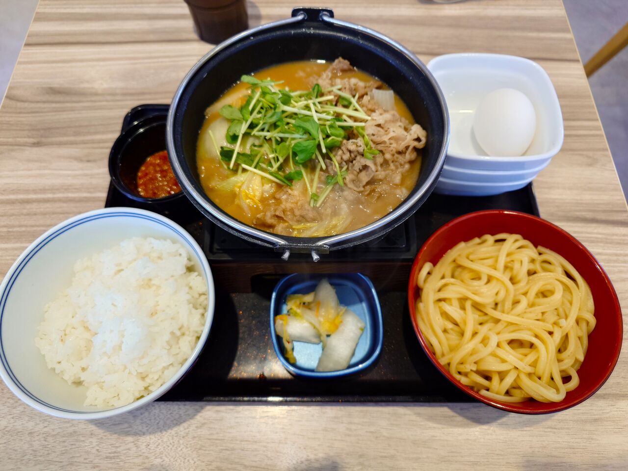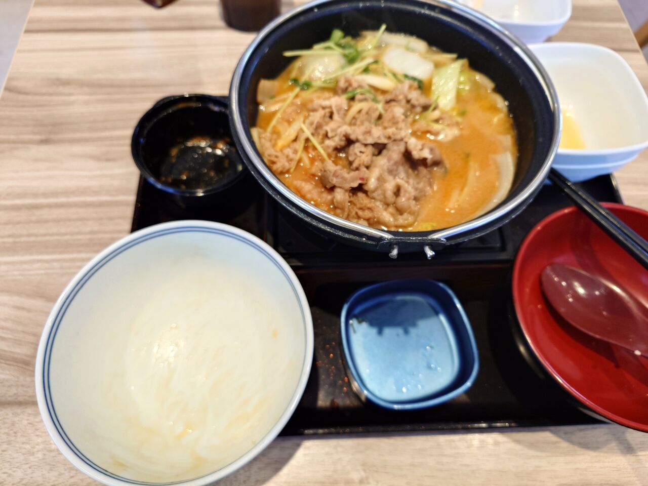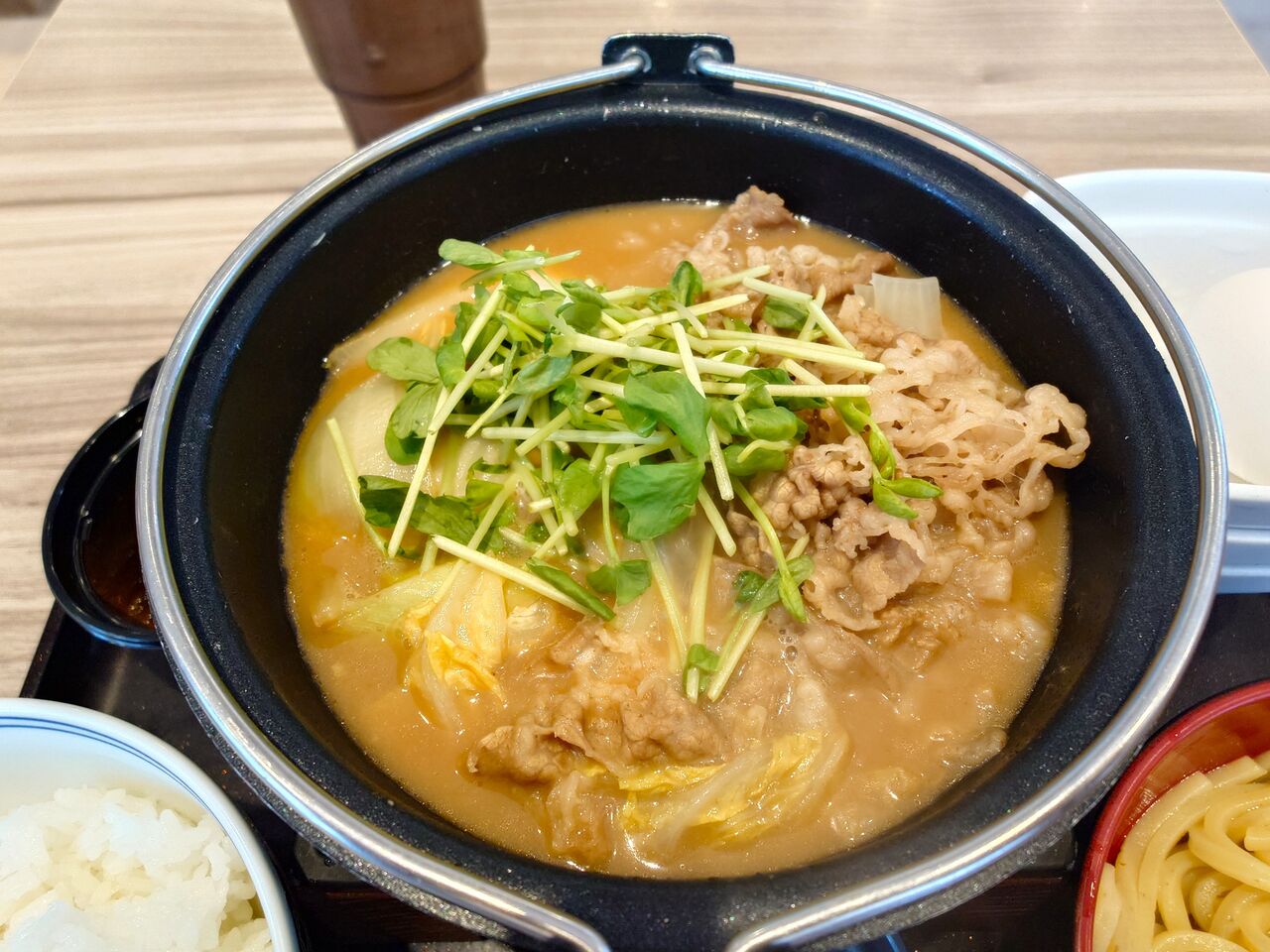 吉野家の牛肉玉ラーメン鍋膳を!!