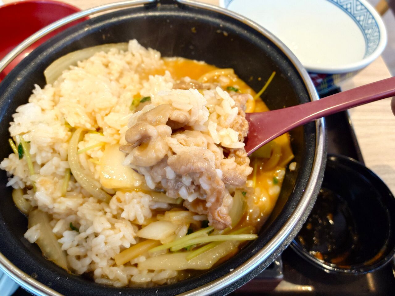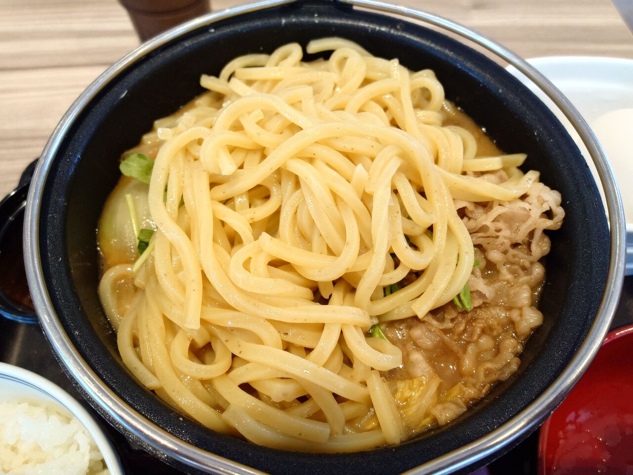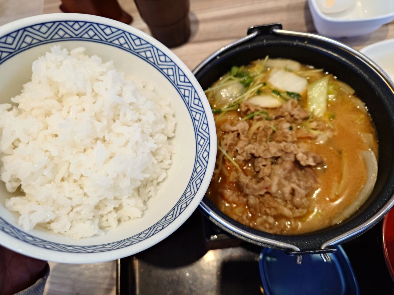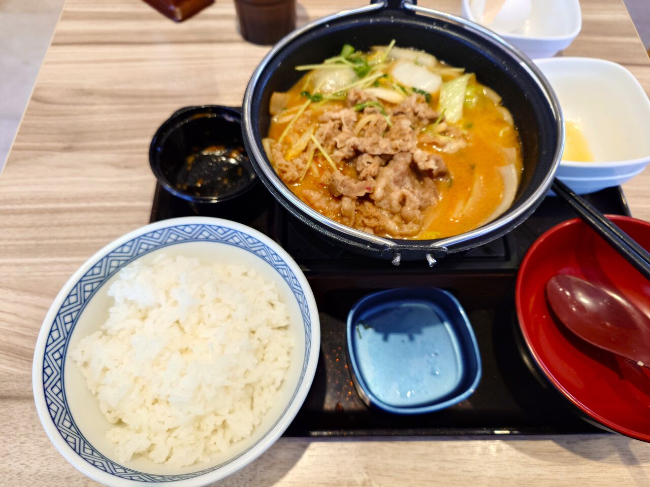 吉野家の牛肉玉ラーメン鍋膳を!!