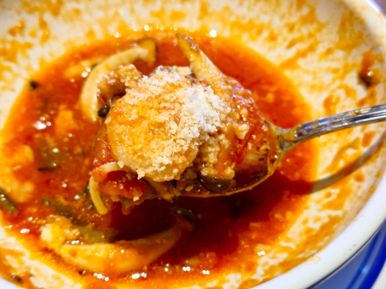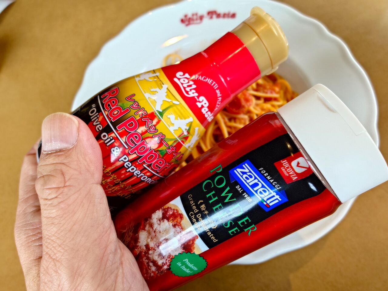 レッドペッパーオイルと粉チーズを