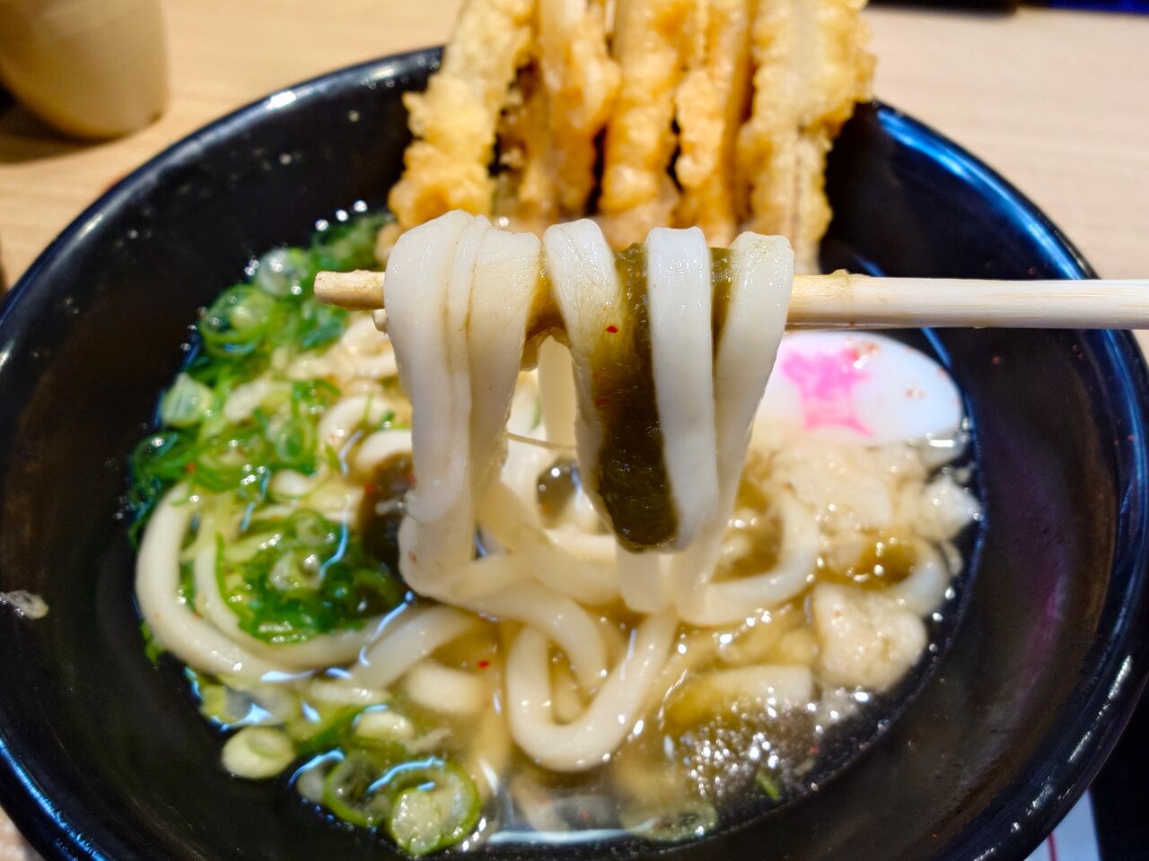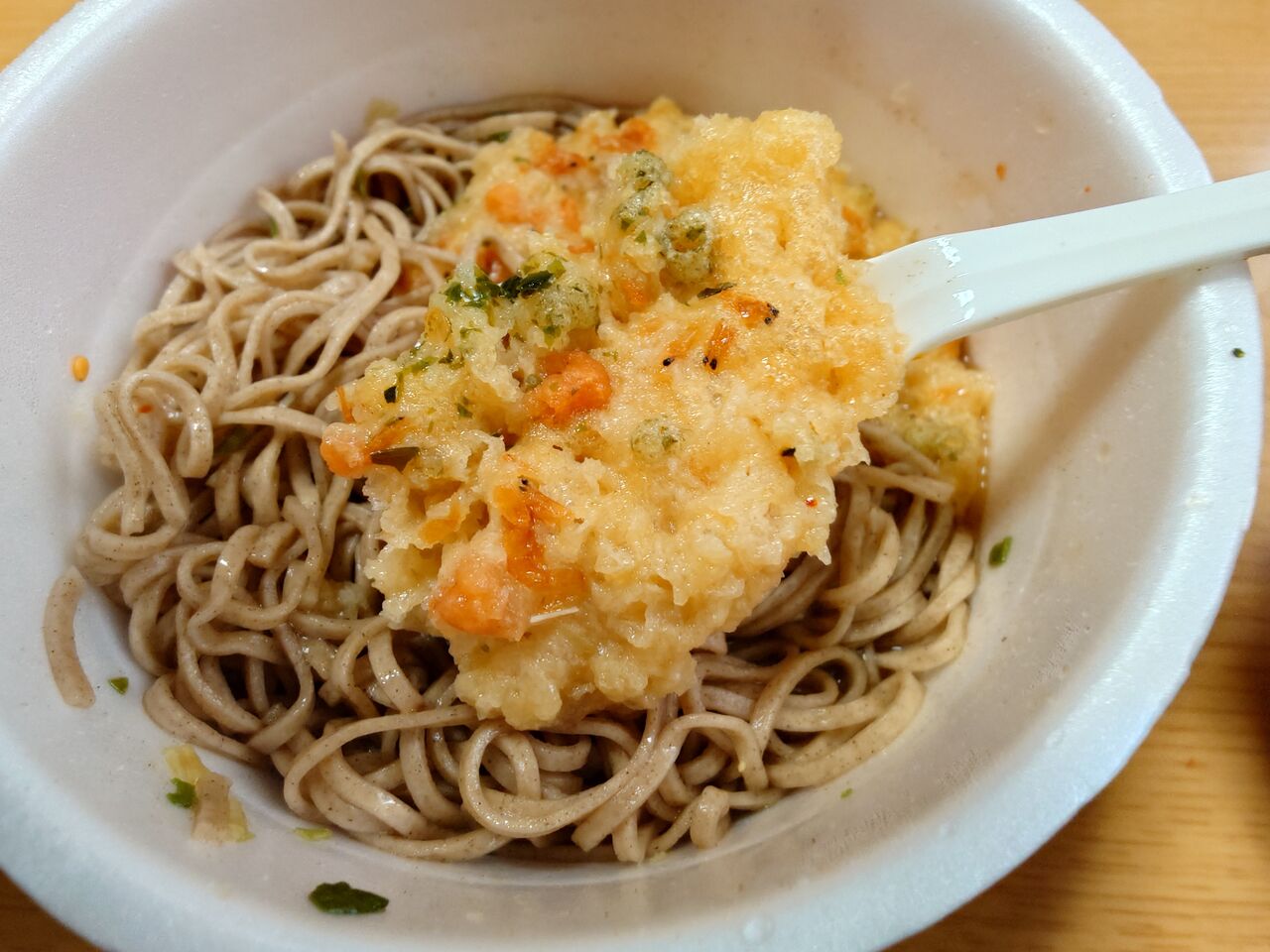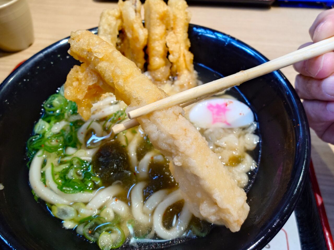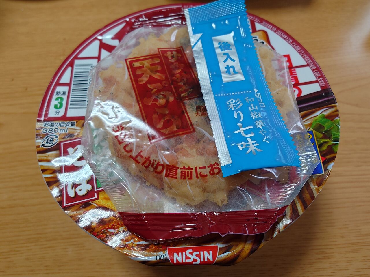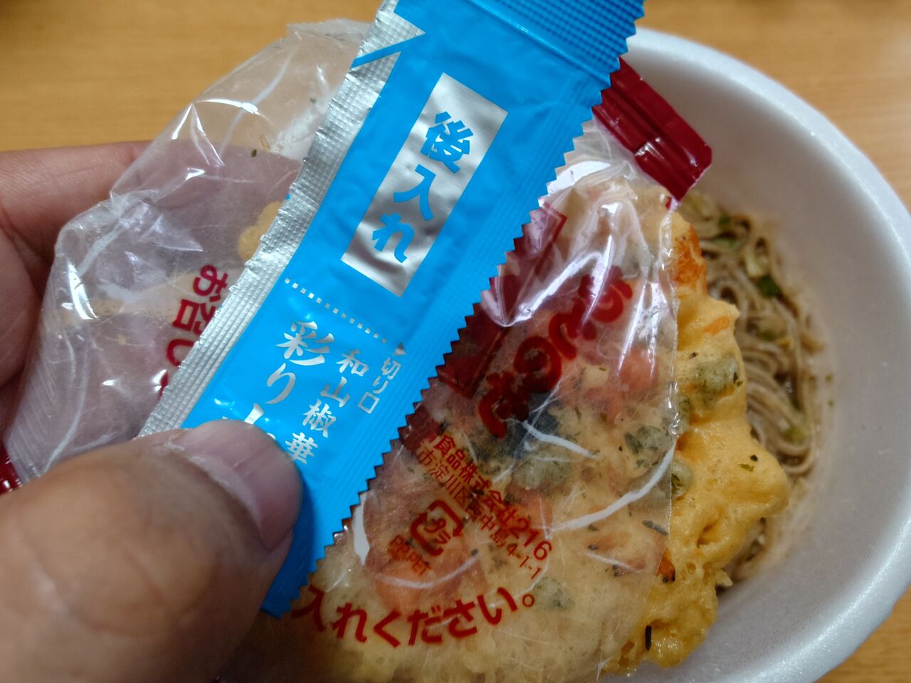 後入れの天ぷらと七味を入れたら
