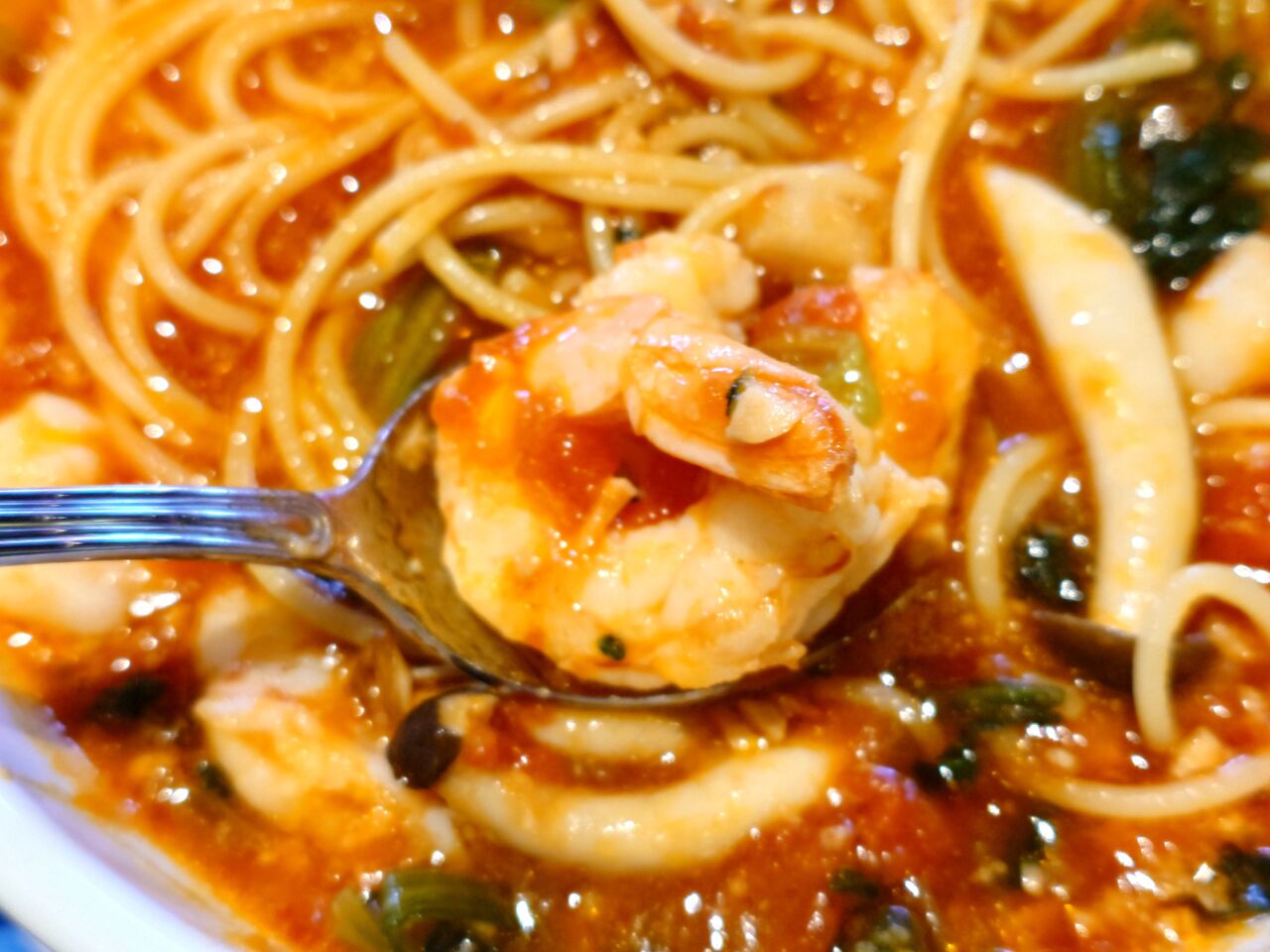 ジョリパでたっぷりエビのガーリックトマトスープとバケットを!!