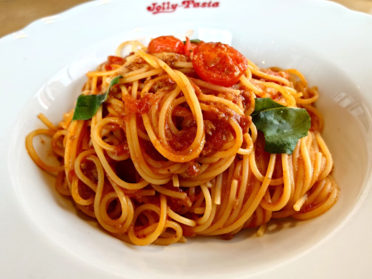 ジョリパのランチメニューのベーコンのトマトミートソースを!!