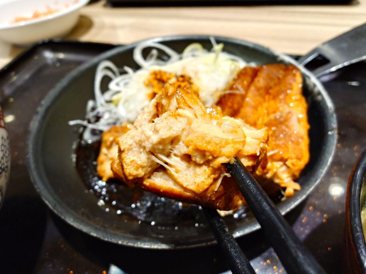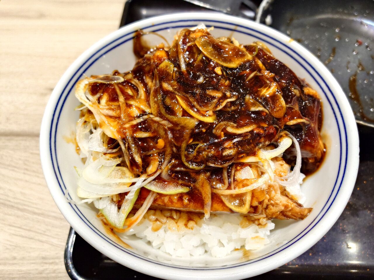 丼物のお決りの2段構造なので