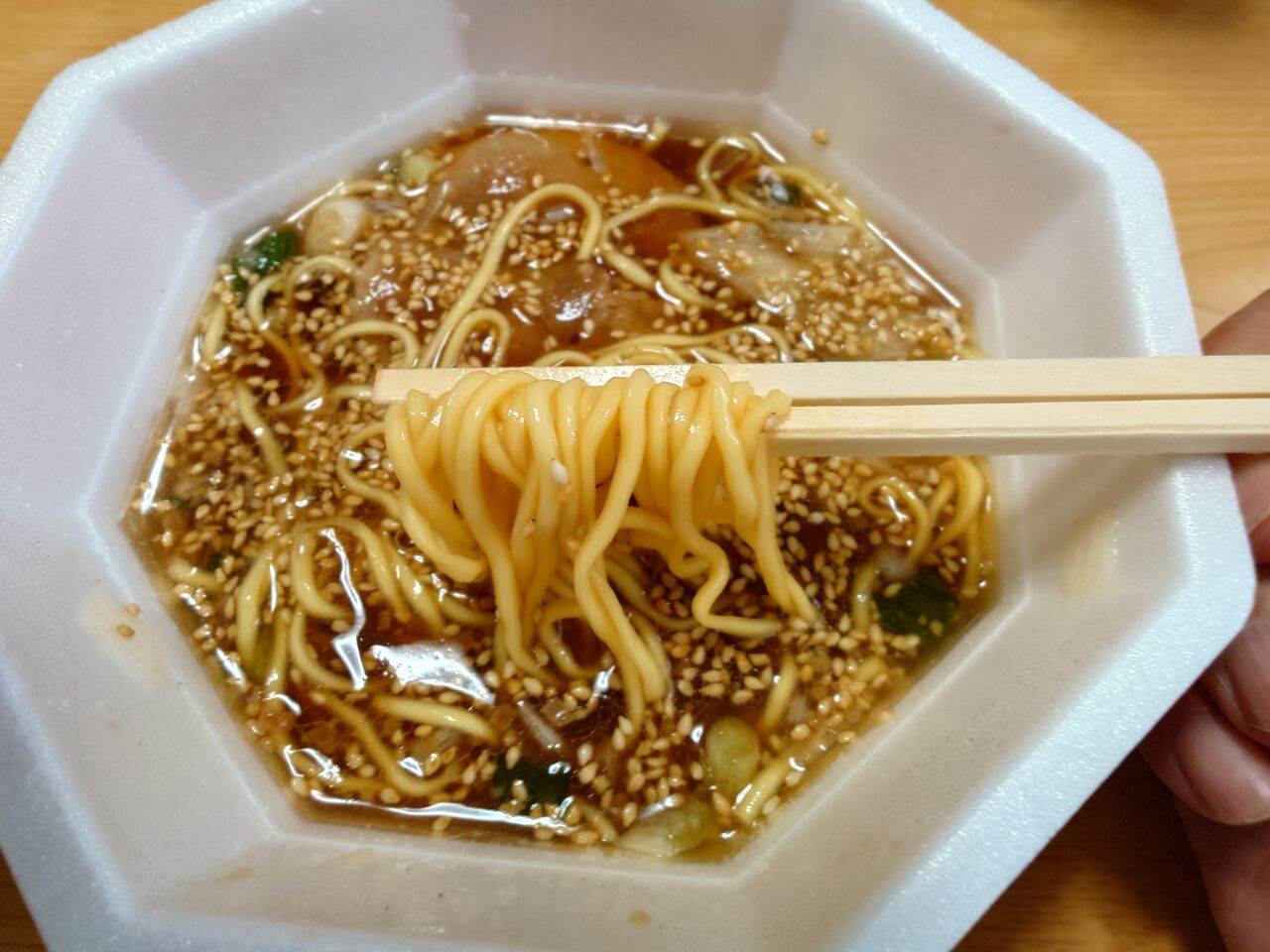 カップ麺にしてはモチモチ感のある麺で旨いですね!!